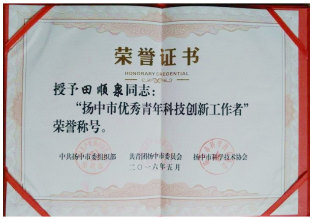 4月25日,有能集團員工田順泉榮獲“揚中市優秀青年科技創新工作者”稱號。